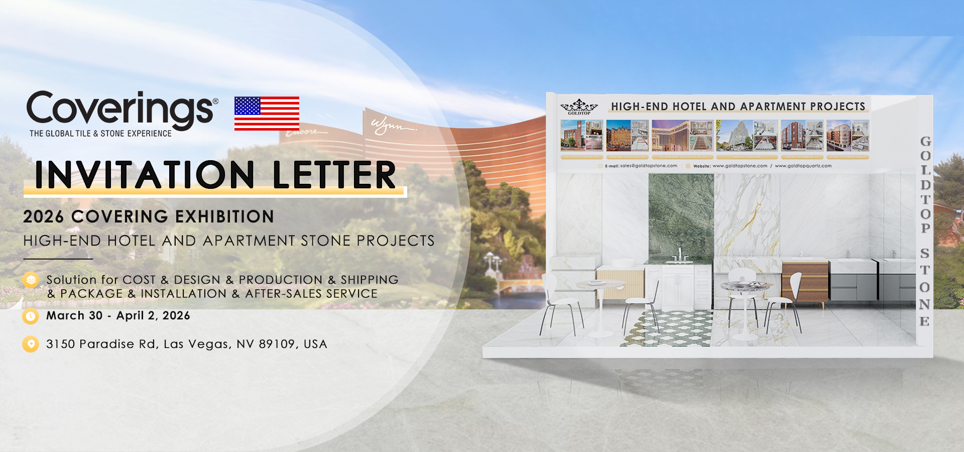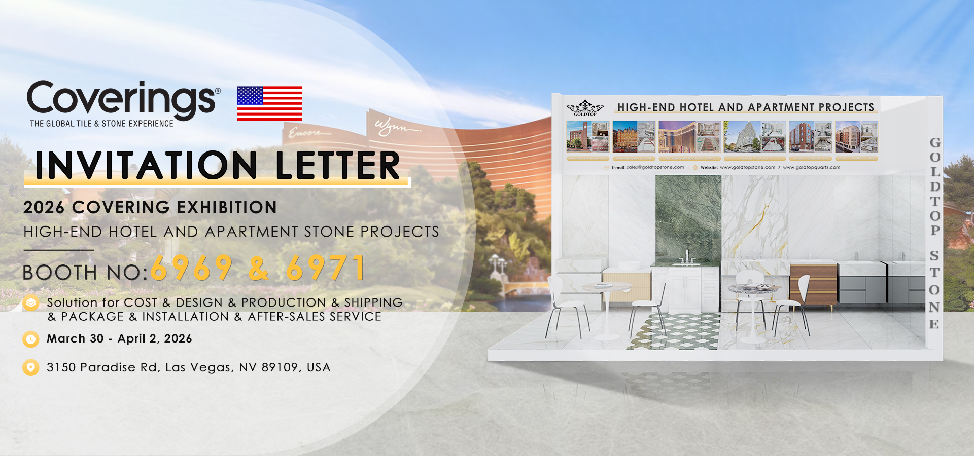 Goldtop offers Engineered Quartz slabs and customized countertops for hotels and apartments projects. We provide slabs for wholesaler clients,kitchen countertops and vanity tops for many US hotels and apartments,like Hilton,Marriott, Sheraton,Holiday Inn,etc