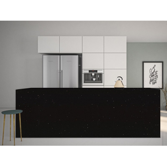 Sparkle Quartz INK PLANT is a specially treated artificial quartz stone that differs from other series in that it has a more sparkling appearance. these Quartz impart a sense of depth and texture when installed on the walls, Flooring, Countertops etc. They can be used to create stunning wall pieces and basin backsplashes in your bathrooms and kitchen. These Quartz work extremely well in areas that remain in contact with moisture owing to their germ-free and moisture resistance properties.