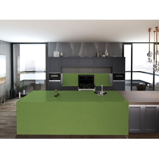 Green Apple Aura Quartz Countertop, a kind of green that makes people feel happy uses slab, use Green Apple Aura Quartz to decorate kitchen countertops, bathroom walls, etc. are very verified, I believe, you will love this decoration.