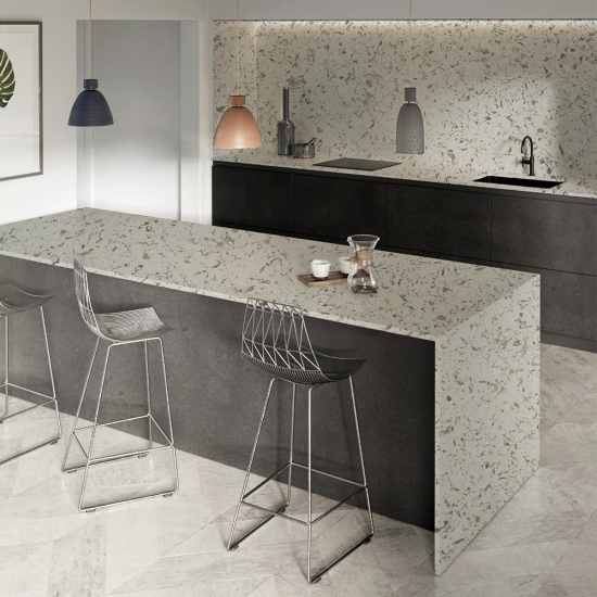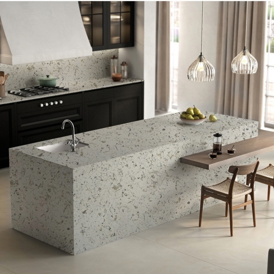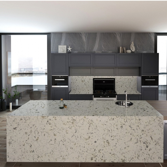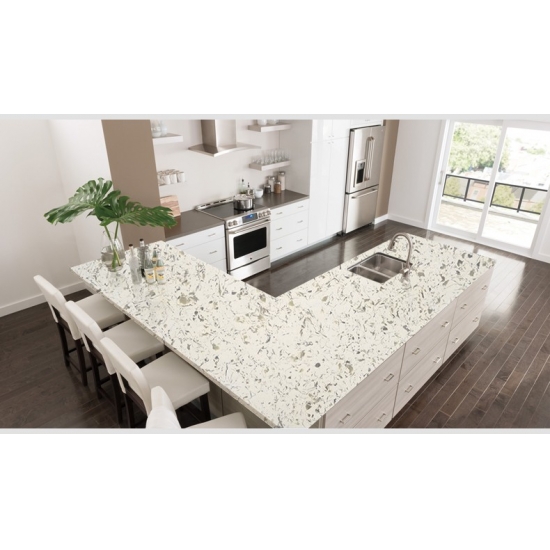 Sparkle Quartz Fish White is a specially treated artificial quartz stone that differs from other series in that it has a more sparkling appearance. these Quartz impart a sense of depth and texture when installed on the walls, Flooring, Countertops etc. They can be used to create stunning wall pieces and basin backsplashes in your bathrooms and kitchen. These Quartz work extremely well in areas that remain in contact with moisture owing to their germ-free and moisture resistance properties.