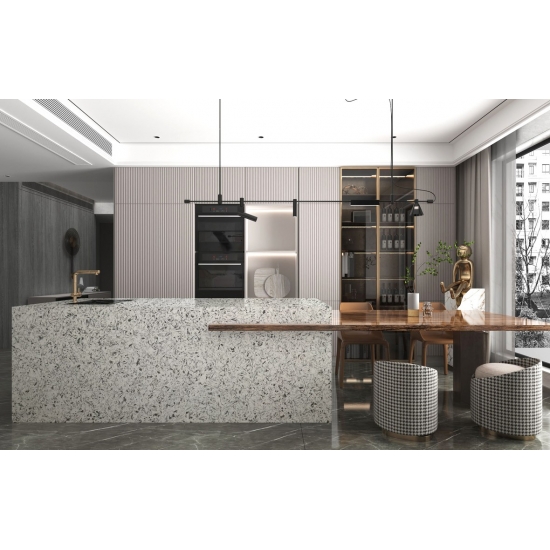 Wing Soar Dark Sparkle Quartz is a specially treated artificial quartz stone that differs from other series in that it has a more sparkling appearance. these Quartz impart a sense of depth and texture when installed on the walls, Flooring, Countertops etc. They can be used to create stunning wall pieces and basin backsplashes in your bathrooms and kitchen. These Quartz work extremely well in areas that remain in contact with moisture owing to their germ-free and moisture resistance properties.