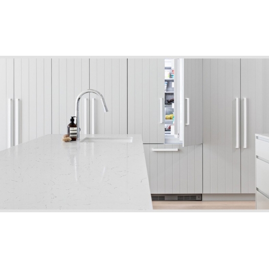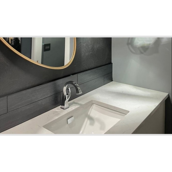 4047 Carrara Thread Marble Quartz features a classic, elegant look with its soft white background delicately veined with subtle gray threads. The surface exudes timeless sophistication, as the gentle veins create natural movement and depth without overwhelming the space. This quartz slab is designed to enhance interiors with a refined, understated beauty, bringing a sense of calm and luxury to countertops, vanities, and other applications.