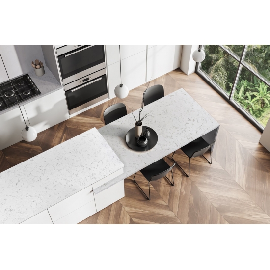 4051 Carrara Gold Quartz is a versatile and elegant engineered stone known for its clean, pure white appearance. Its smooth, consistent surface makes it a timeless option for modern and minimalist designs. The simplicity of Organic White allows it to blend seamlessly with a variety of interior styles, offering a sleek and sophisticated backdrop in any space.