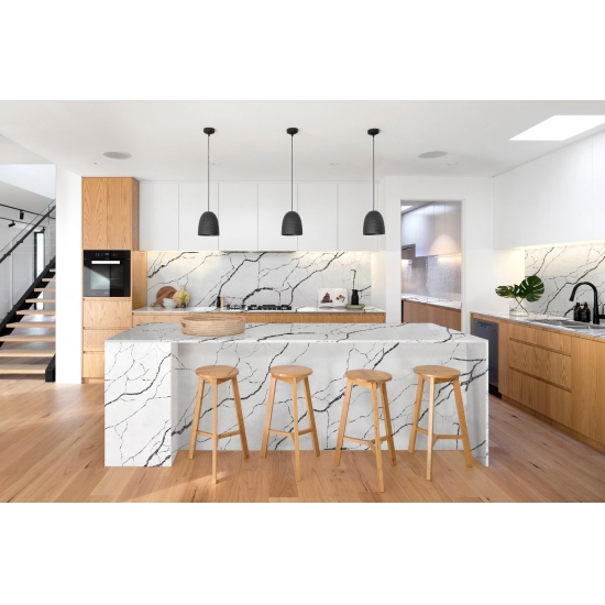This quartz is perfect for a wide range of applications, from countertops and kitchen islands to feature walls and vanities. Its bold veining adds character and sophistication, making it a focal point in any design. Whether paired with sleek metallics or warm wooden tones, 5125 Calacatta Fiorina Quartz enhances the elegance of any space.