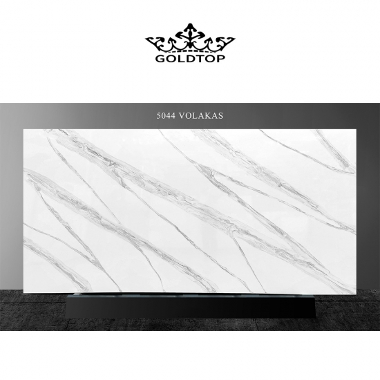 5044 Volakas White Calacatta Quartz is ideal for a variety of applications, thanks to its timeless elegance and versatile design. This polished quartz is commonly used for kitchen countertops, bathroom vanities, and backsplashes, where its clean white surface with soft gray veining adds a touch of sophistication. It’s also perfect for wall cladding and flooring in both residential and commercial spaces.
