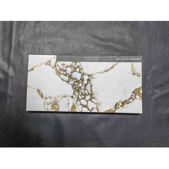 Exquisite and unique,Calacatta Quartz stuns the senses with its clean whites and striking through-body marble look veining.With its beautiful striking wide vein pattern and luxurious feel. This quartz offers the natural look of the Calacatta marble, but with none of the drawbacks that come with marble worktops. Calacatta quartz is a very durable worktop that is stain and scratch resistant meaning it is also a very practical choice for kitchen and bathroom countertops, stairs, window sills, custom furniture, interior, exterior wall and floor applications, water jet pattern and other design projects.