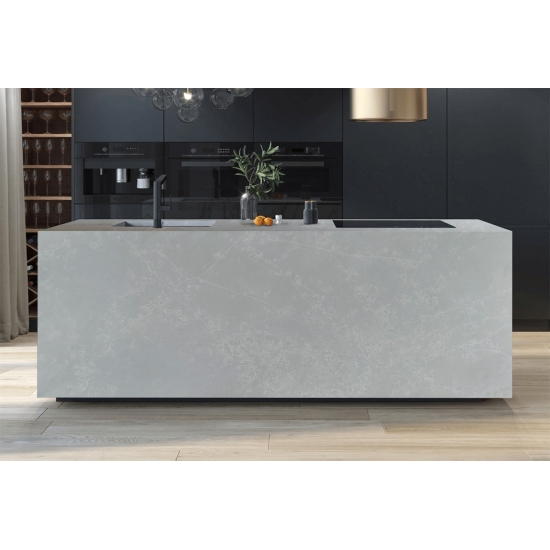 5128 Fior Bosco Quartz showcases a sophisticated gray canvas, elegantly traced with delicate, organic veining that evokes the serene beauty of a forest landscape. Each slab presents a unique composition of tonal depth and fluid movement, bringing a modern and atmospheric tranquility to any interior. Its luminous surface enhances light reflection, creating a dynamic visual flow perfect for kitchen countertops, bathroom vanities, and feature walls.