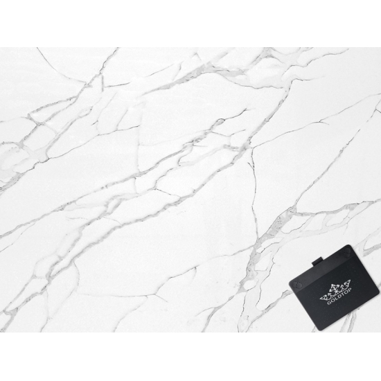 Calacatta Quartz is made from natural components, but strong, durable and low-porosity, which makes stone products made of quartz practically wear-free. Durability, comfort and consistent pattern are the main reasons for the growing popularity of quartz stone. Quartz stone is 90% natural stone, the rest is glue, dyes and additives that improve the technical properties of the stone.Water permeability and stain resistance complements the beauty of quartz stone.