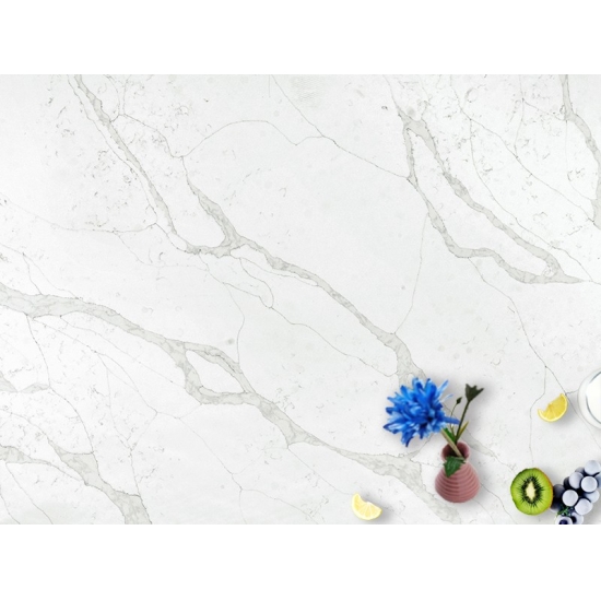 5063 Verona Calacatta Quartz, as a zero-silica quartz, offers a healthier and more sustainable option for surfaces, especially in kitchens and bathrooms. Its non-silica composition makes it safer for installation and reduces health risks associated with silica dust exposure. The elegant Calacatta veining provides a luxurious marble-like appearance, while its durable, non-porous surface ensures resistance to stains, scratches, and heat.