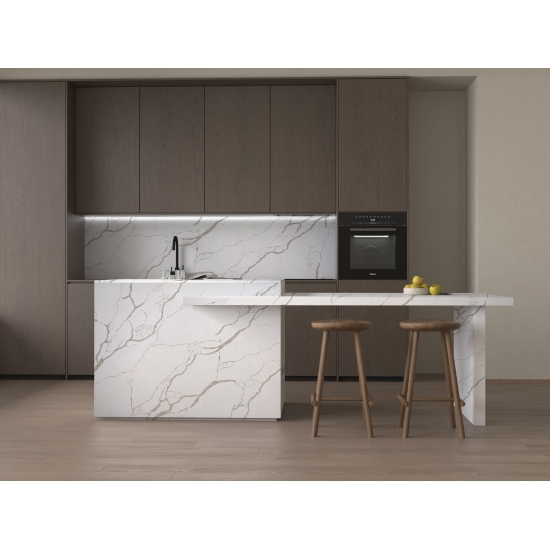 This quartz is perfect for a wide range of applications, from countertops and kitchen islands to feature walls and vanities. Its bold veining adds character and sophistication, making it a focal point in any design. Whether paired with sleek metallics or warm wooden tones, 5125 Calacatta Fiorina Quartz enhances the elegance of any space.