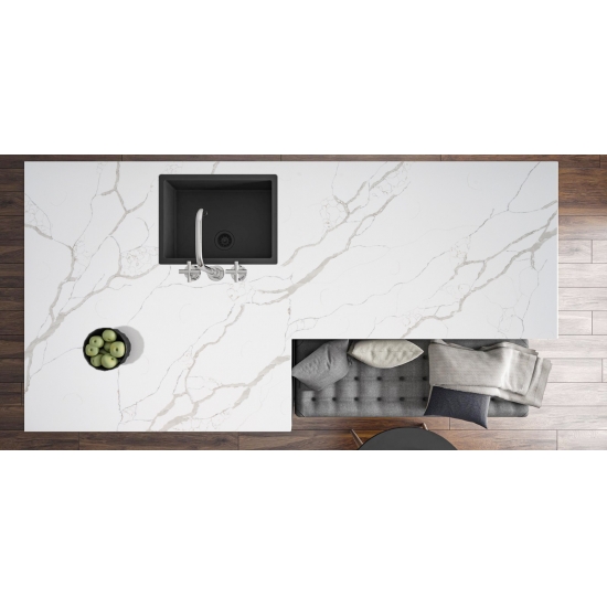 Calacatta Quartz is made from natural components, but strong, durable and low-porosity, which makes stone products made of quartz practically wear-free. Durability, comfort and consistent pattern are the main reasons for the growing popularity of quartz stone. Quartz stone is 90% natural stone, the rest is glue, dyes and additives that improve the technical properties of the stone.Water permeability and stain resistance complements the beauty of quartz stone.