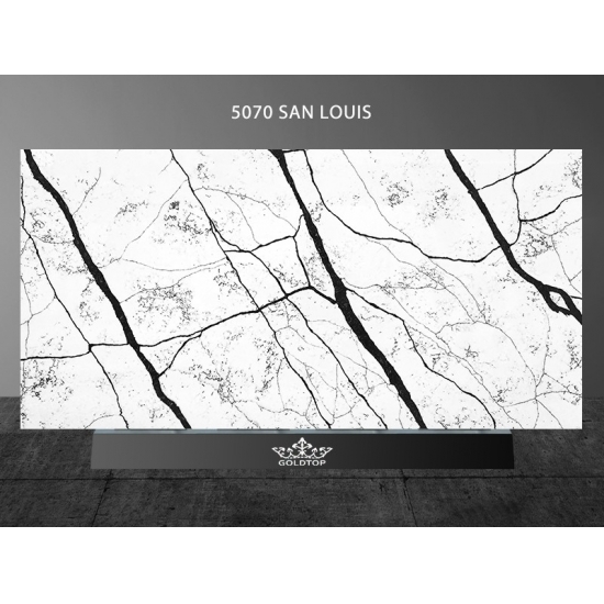 GOLDTOP 5070 San Louis White Calacatta Quartz With Thick Black Stripes