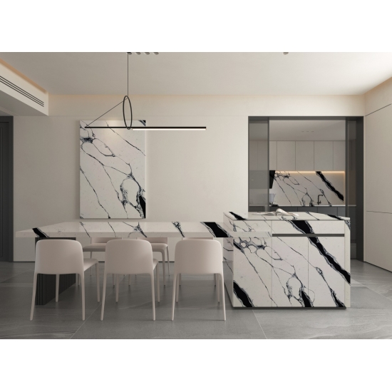 This quartz is perfect for a wide range of applications, from countertops and kitchen islands to feature walls and vanities. Its bold veining adds character and sophistication, making it a focal point in any design. Whether paired with sleek metallics or warm wooden tones, 5125 Calacatta Fiorina Quartz enhances the elegance of any space.
