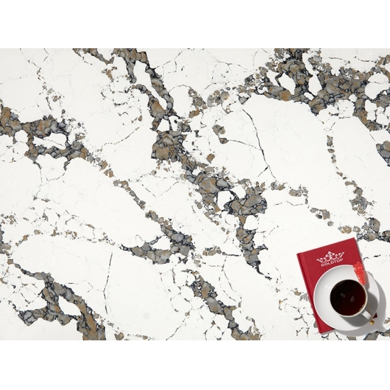 The Calacatta series quartz is currently the most popular quartz stone product.Exquisite and unique,Calacatta Quartz stuns the senses with its clean whites and striking through-body marble look veining.With its beautiful striking wide vein pattern and luxurious feel. This quartz offers the natural look of the Calacatta marble, but with none of the drawbacks that come with marble worktops. Calacatta quartz is a very durable worktop that is stain and scratch resistant meaning it is also a very practical choice for kitchen and bathroom countertops, stairs, window sills, custom furniture, interior, exterior wall and floor applications, water jet pattern and other design projects.