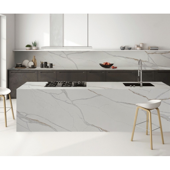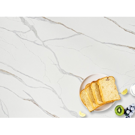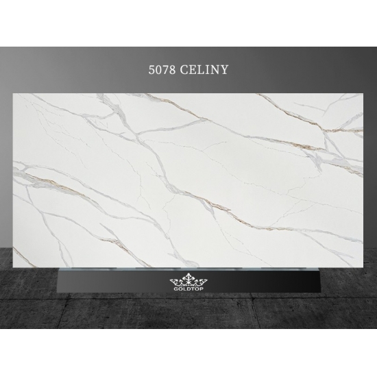 Introducing the unparalleled beauty of Celiny Quartz Countertops Sl ab White With Gold Texture! This exquisite slab captures the graceful elegance of a majestic white backdrop beautifully intertwined with delicate hints of gold textures to bring a touch of luxury and sophistication to your home décor. Crafted with high-quality materials and innovative technology, this versatile surface is perfect for transforming your kitchen or bathroom into a radiant oasis of style and comfort.