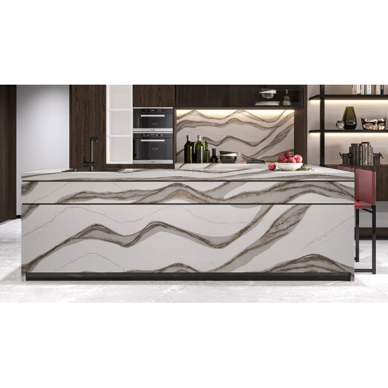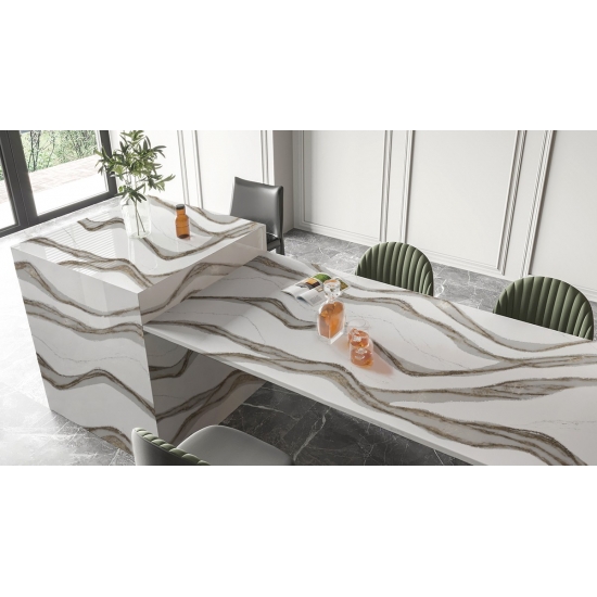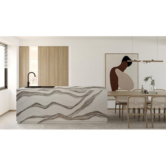 5081 Skara Delicato quartz is a sophisticated stone that exudes elegance with its soft white background, adorned by subtle gray veining. This design is inspired by the timeless beauty of natural marble but offers the enhanced durability and low maintenance of quartz. The delicate veining flows seamlessly across the surface, adding a touch of refinement to any space.