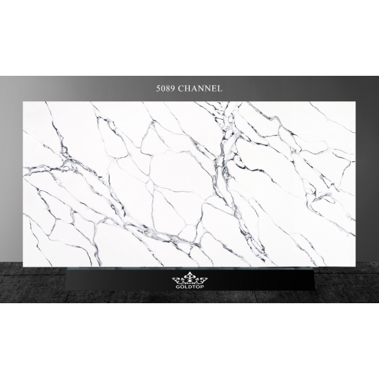 The Calacatta series quartz is currently the most popular quartz stone product.Exquisite and unique,Calacatta Quartz stuns the senses with its clean whites and striking through-body marble look veining.With its beautiful striking wide vein pattern and luxurious feel. This quartz offers the natural look of the Calacatta marble, but with none of the drawbacks that come with marble worktops. Calacatta quartz is a very durable worktop that is stain and scratch resistant meaning it is also a very practical choice for kitchen and bathroom countertops, stairs, window sills, custom furniture, interior, exterior wall and floor applications, water jet pattern and other design projects.