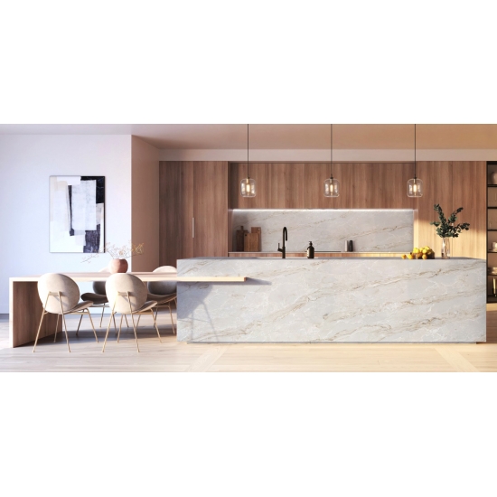 4051 Carrara Gold Quartz is a versatile and elegant engineered stone known for its clean, pure white appearance. Its smooth, consistent surface makes it a timeless option for modern and minimalist designs. The simplicity of Organic White allows it to blend seamlessly with a variety of interior styles, offering a sleek and sophisticated backdrop in any space.