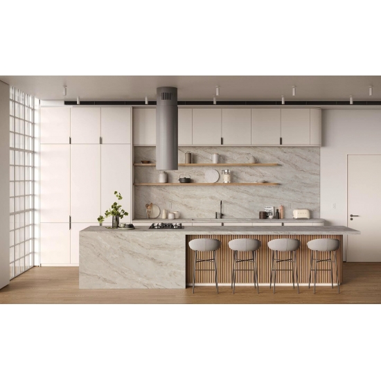 4052 Ariston Grey has a simple yet elegant grey tone, presenting an understated and modern aesthetic. This quartz is extremely resistant to scratches, stains and heat, making it an ideal choice for high-use areas such as kitchen countertops and bathroom countertops. Due to its dense structure, Ariston Grey Quartz is highly water-resistant and easy to clean, maintaining long-term beauty.