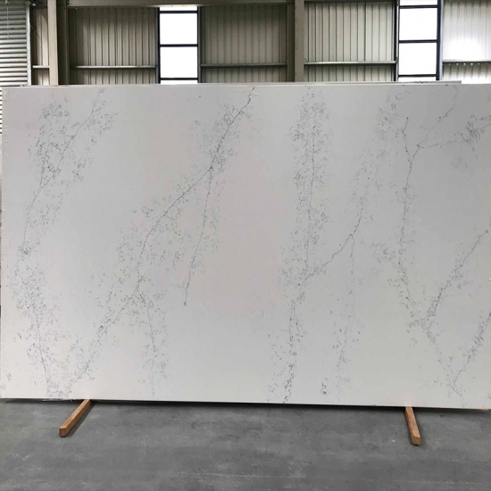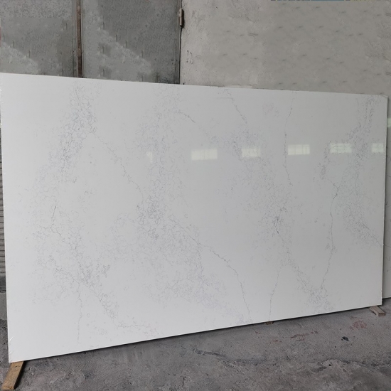 Cement White Quartz Snowflake Texture Quartz is a specially treated artificial stone quartz material.It similar to a matte finish, a concrete finish will slightly alter the color of the quartz as compared to the classic polished finish. This finish is also referred to as “brushed” when referring to granite.