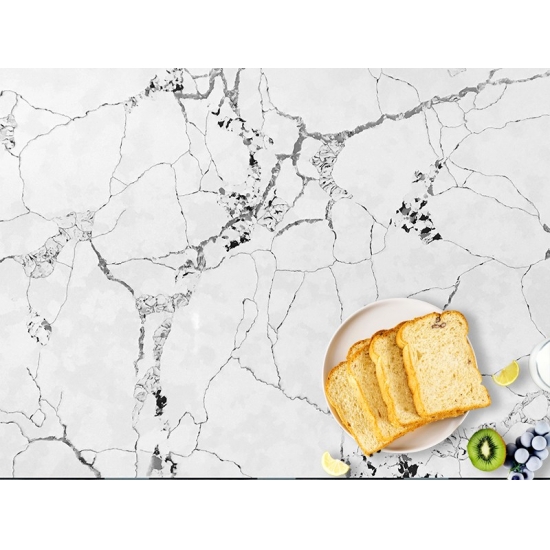 Cement White Quartz Snowflake Texture Quartz is a specially treated artificial stone quartz material.It similar to a matte finish, a concrete finish will slightly alter the color of the quartz as compared to the classic polished finish. This finish is also referred to as “brushed” when referring to granite.