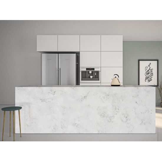 6022 Concrete Onyx is a contemporary and stylish engineered stone known for its sleek and modern appearance. It features a light gray base with subtle, sophisticated veining in darker shades, creating a refined and industrial-inspired look. The veining often resembles the textures found in concrete, adding to its urban and chic aesthetic.