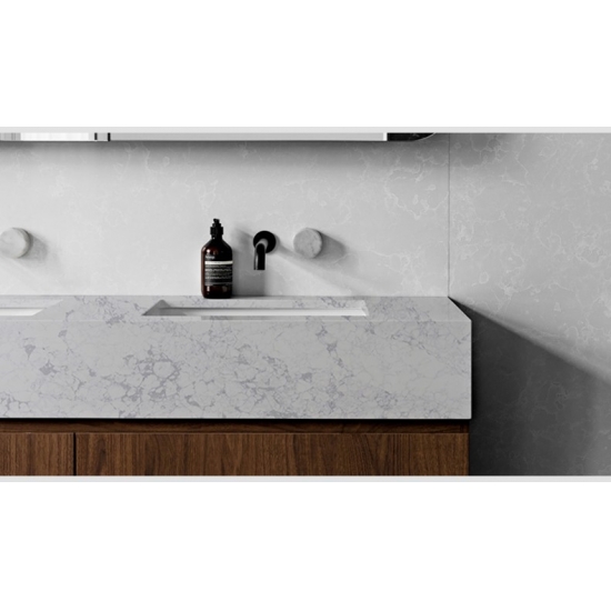 6025 Arabescato Exotic Quartz Slab presents a refined white surface enriched with elegant grey veins, offering a contemporary and harmonious aesthetic ideal for large-scale residential and commercial applications.Engineered for consistent performance and visual uniformity, it delivers exceptional hardness, stain resistance, and precise batch-to-batch control — making it a trusted solution for bulk supply and long-term project execution.
