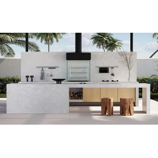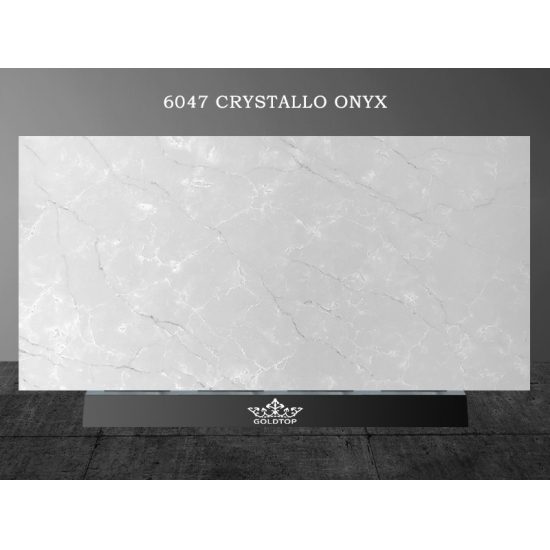 6047 Crystallo Onyx Quartz is a premium engineered stone that faithfully replicates the luminous beauty of natural Cristallo Onyx Quartzite. Its soft, translucent surface features delicate veining and a warm, polished sheen—exuding a gentle, refined texture that feels as elegant as natural onyx. The subtle interplay of light across the slab creates a serene, sophisticated ambiance, perfect for those who appreciate the look of luxury stone with enhanced practicality.