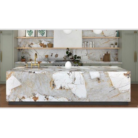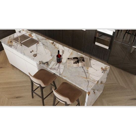Experience design freedom with the Pandora Printed Quartz Slab. By achieving deep, consistent veining through 3D printing, it eliminates visual disruptions on cuts and edges. This allows the natural marble aesthetic to flow uninterrupted across surfaces, empowering more creative and commercially viable applications in both residential and contract projects.