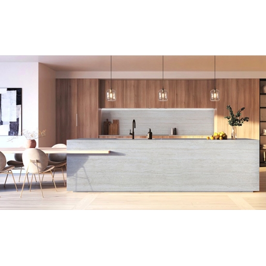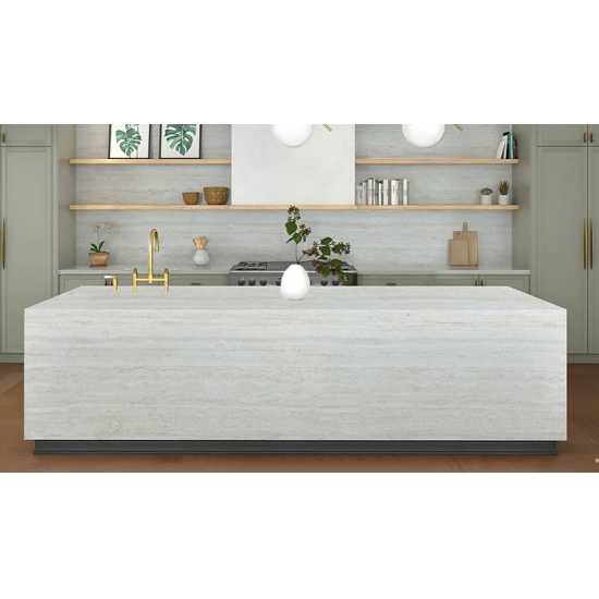 Roman Travertine PD Printed Quartz unveils a serene world of timeless elegance. Bathed in a soft, warm beige hue reminiscent of sun-kissed silk, its surface exudes purity and tranquility, establishing a visually soothing and restorative foundation. Delicate veining weaves through like natural imprints left by time, adding an artistic touch to its understated luxury. Every inch flows with quiet opulence, infusing any space with the serene stillness of historical depth.