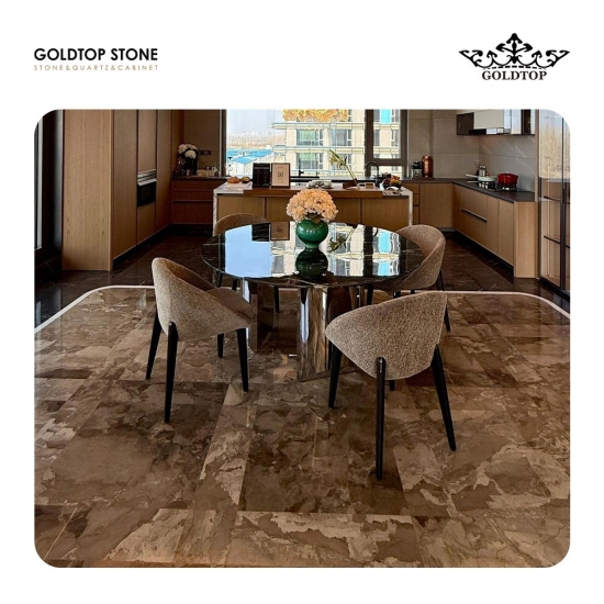 Goldtop Stone, a company specializing in integrated solutions for high-end stone and cabinet projects. We provide global clients with a comprehensive end-to-end turnkey service, covering everything from material selection and design, pro.duction management, to international logistics, customs clearance and delivery services. We have an excellent full-set team, including design team, transportation team, quality inspection team, etc., providing customers with one-stop service and saving customers a lot of un-necessary trouble.