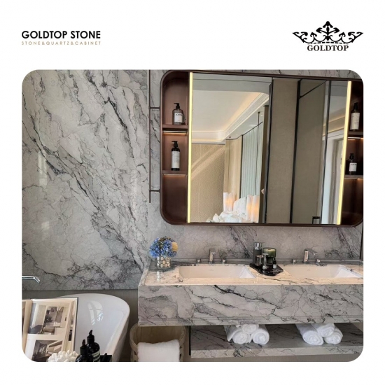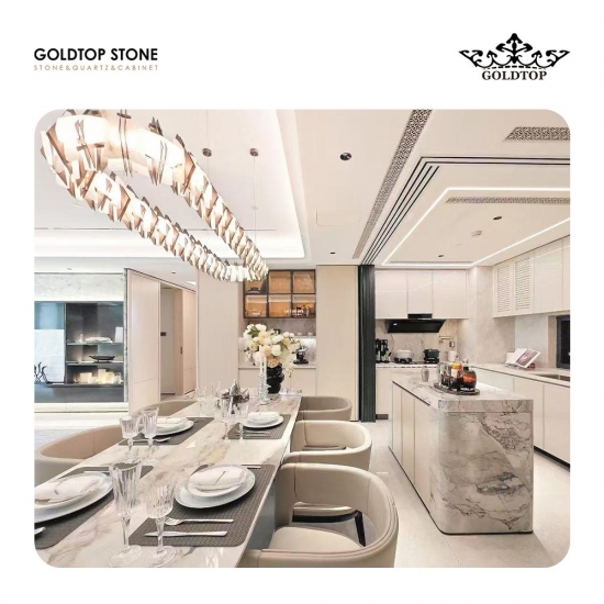 Goldtop Stone, a company specializing in integrated solutions for high-end stone and cabinet projects. We provide global clients with a comprehensive end-to-end turnkey service, covering everything from material selection and design, pro.duction management, to international logistics, customs clearance and delivery services. We have an excellent full-set team, including design team, transportation team, quality inspection team, etc., providing customers with one-stop service and saving customers a lot of un-necessary trouble.
