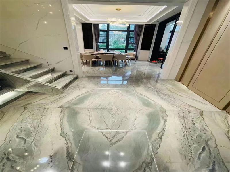 This Brazilian Calacatta Quartzite is quartzite with blue stripes. It is often used for stair floor decoration. The effect is very good, non-slip, good pressure resistance, and easy to clean. If you use quartzite in your project, you must use this Brazilian Calacatta Quartzite, we provide samples for your reference!