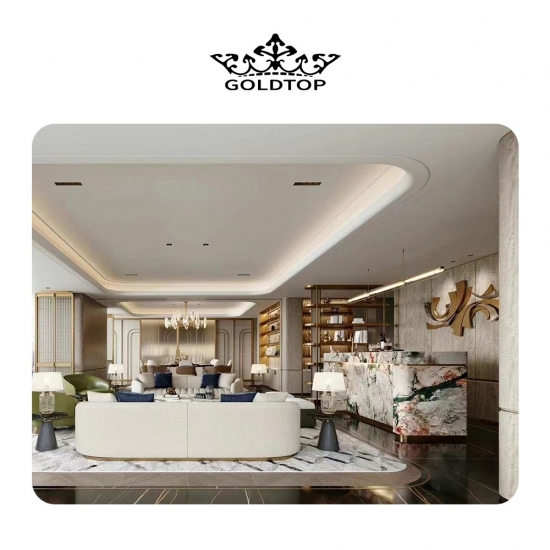 Goldtop Stone, a company specializing in integrated solutions for high-end stone and cabinet projects. We provide global clients with a comprehensive end-to-end turnkey service, covering everything from material selection and design, pro.duction management, to international logistics, customs clearance and delivery services. We have an excellent full-set team, including design team, transportation team, quality inspection team, etc., providing customers with one-stop service and saving customers a lot of un-necessary trouble.