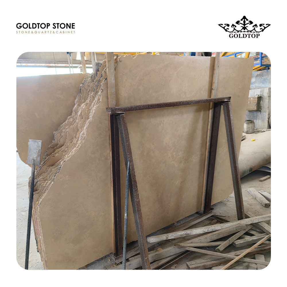 Polished/ Honed/ Groove/ Leather FinishCross Cut Beige Travertine Marble Slabs