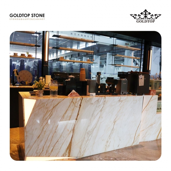 ONE-STOP SOLUTIONS: Goldtop Stone provides one-stop stone purchasing for domestic and commercial customers. Our products can be divided into kitchen countertop, vanity top, dining table, TV cabinet, background wall, flooring tile, wall tile, exterior wall, swimming pool cover, Commercial facade projects such as flower bed and fountains