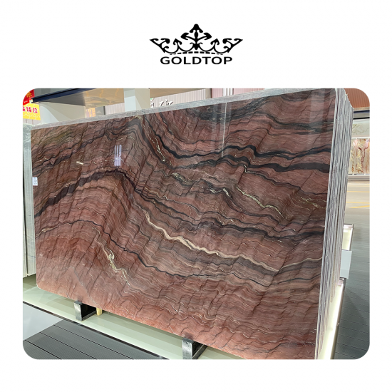 7-30 daysRed Silk Quartzite Big Slab Natural Stone With Unique Dramatic Veining